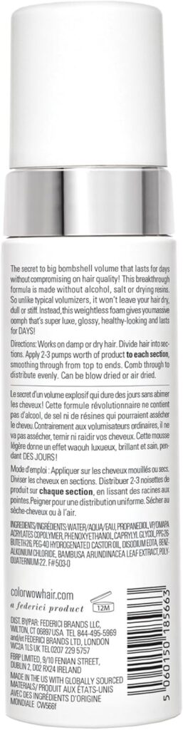 Color Wow Xtra Large se distingue par une formule innovante, pensée pour offrir un volume maximal tout en préservant la santé des cheveux. Contrairement à de nombreuses mousses volumisantes, elle ne contient ni alcool, ni sel, ni résines agressives, évitant ainsi l’effet asséchant ou cartonneux souvent associé à ce type de produit.