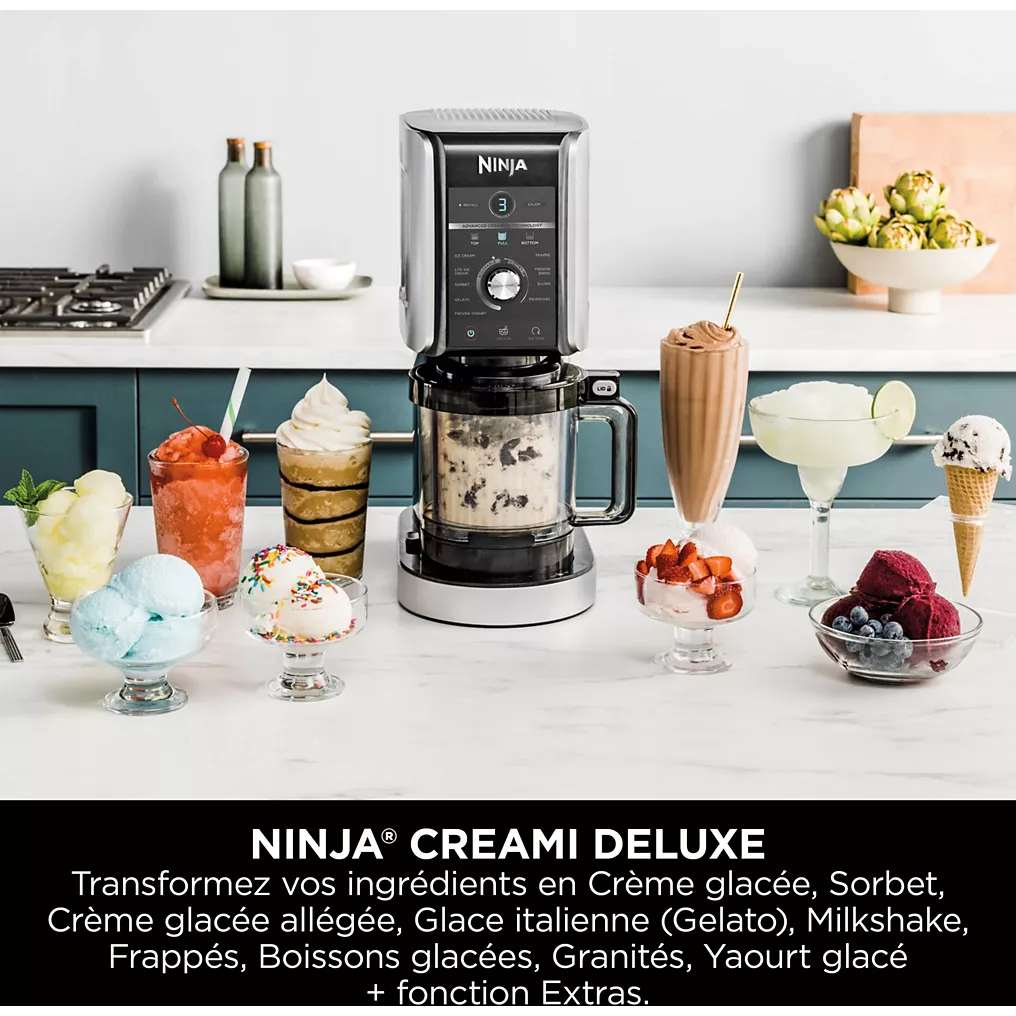 La NINJA Creami Deluxe NC501EU se présente comme une sorbetière haut de gamme, pensée pour les amateurs de desserts glacés faits maison. Grâce à ses 10 programmes, sa grande capacité et ses fonctionnalités avancées, elle promet de satisfaire toutes les envies, des glaces traditionnelles aux recettes adaptées à des régimes spécifiques. Voici notre analyse approfondie, basée sur une utilisation réelle et les retours d’utilisateurs.